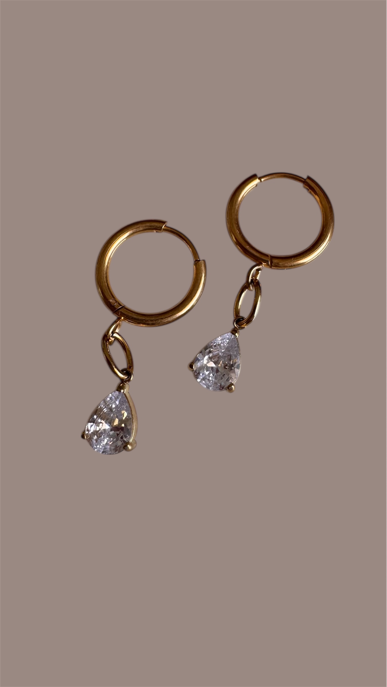 Aros de acero de titanio con gotas de cristal , súper livianos, dorado a prueba de agua.