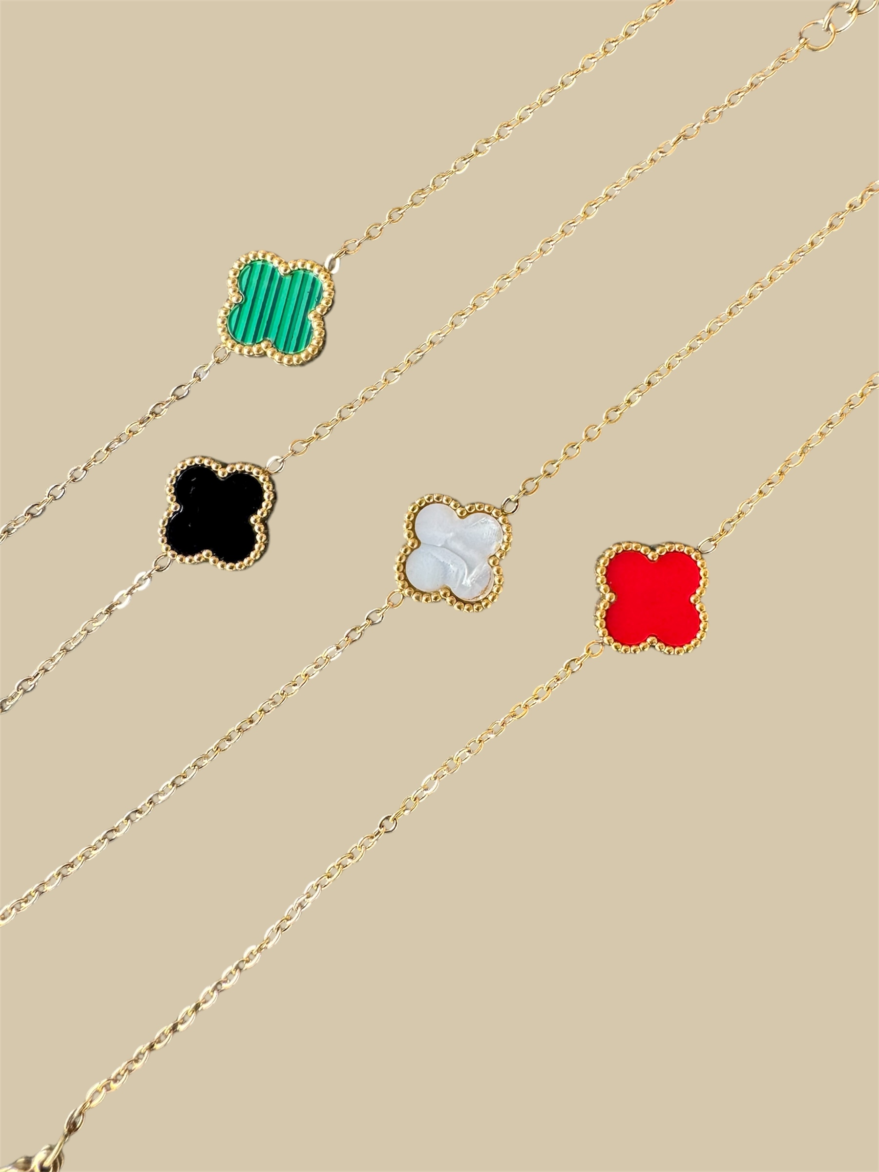 Pulseras con trébol de la suerte, en acero de titanio, chapadas en oro de 18 quilates, con acabado gold fillet, 17 cm de largo más extensión. Consultar por los colores antes de realizar la compra