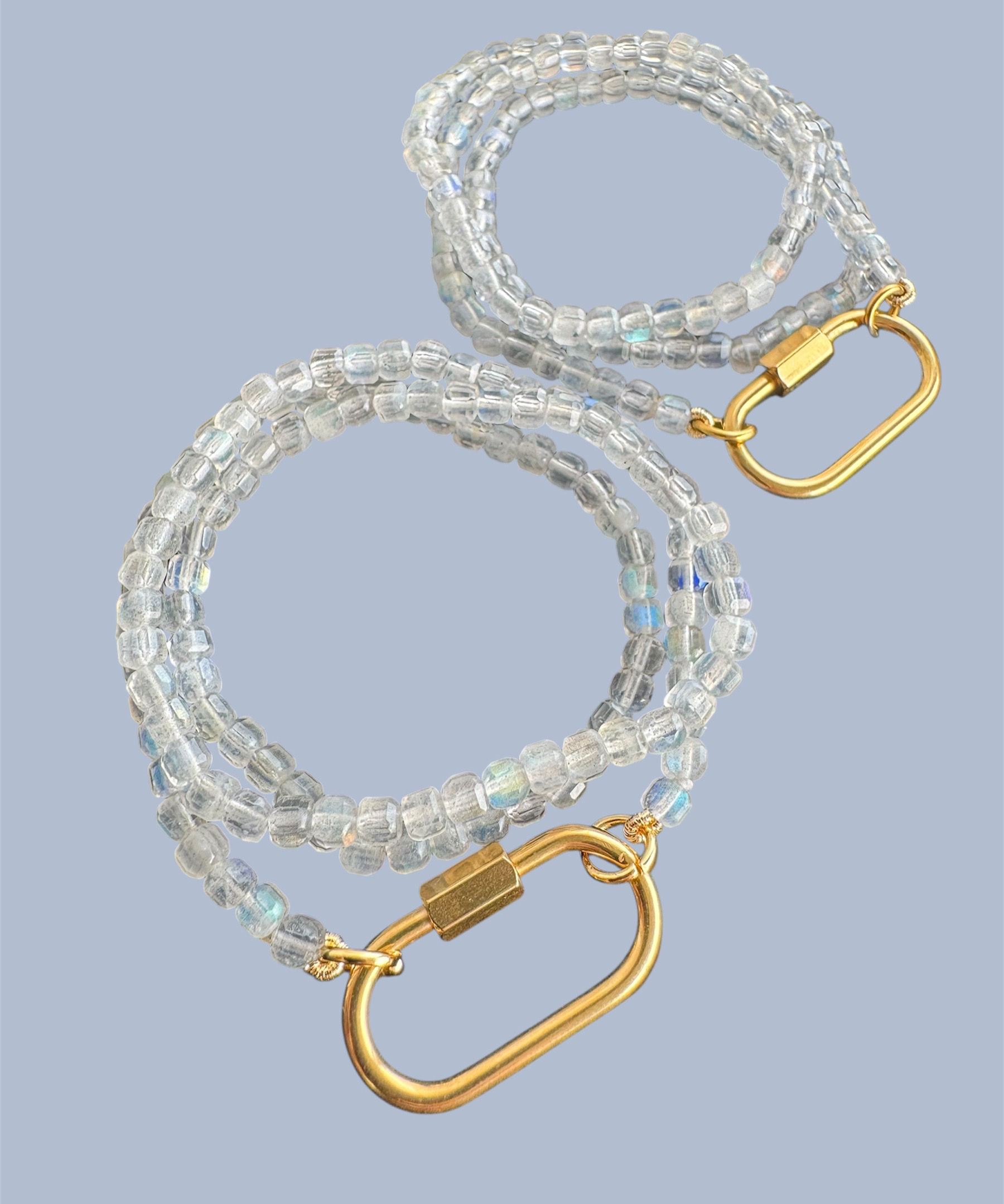 Collar de cuentas de labradorita con locker de acero inoxidable, 43 cm de largo aproximadamente.